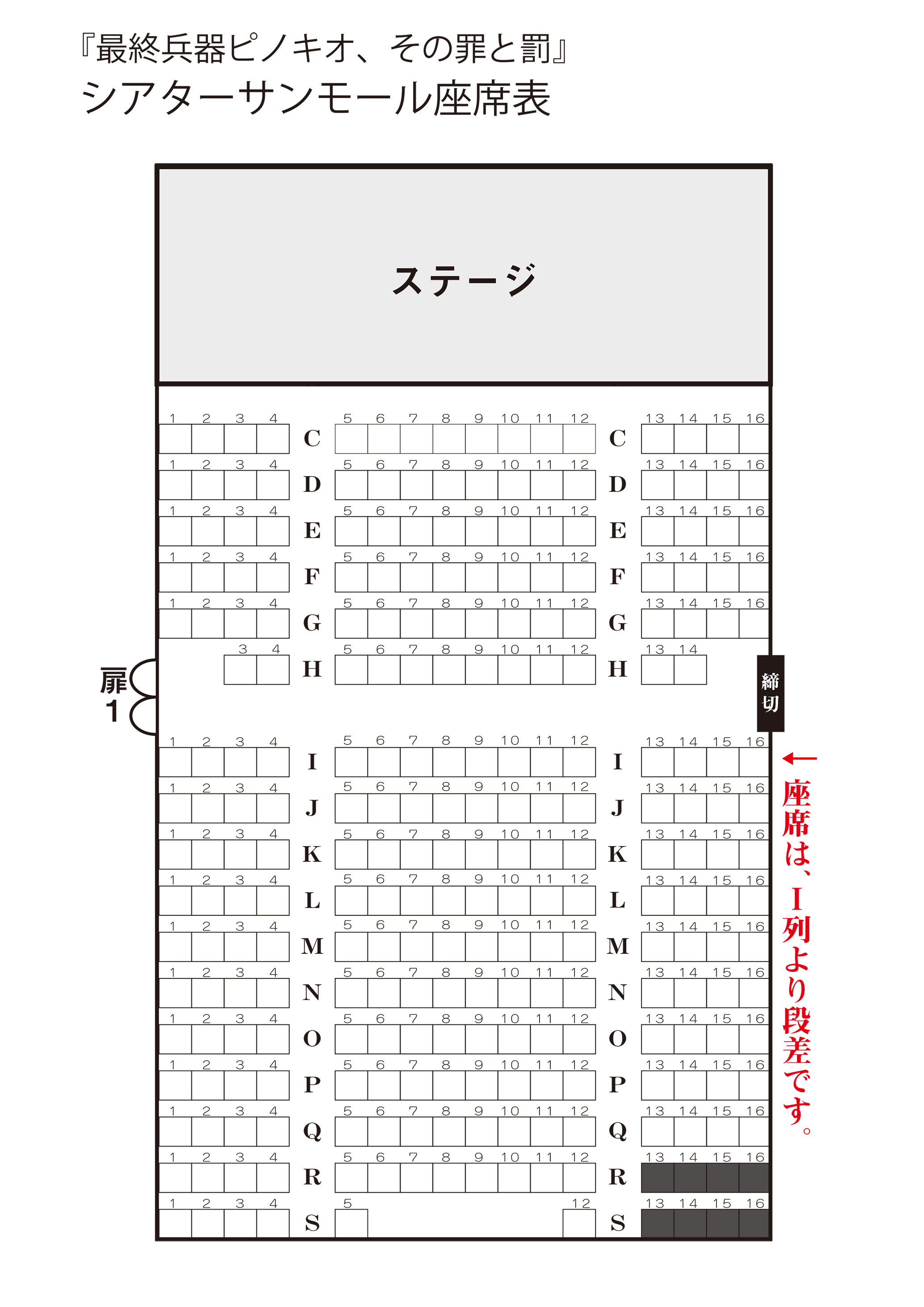 シアターサンモール 劇場HP 〒160-0022 東京都新宿区新宿1-19-10サンモールクレストB1 東京メトロ丸の内線 新宿御苑前駅 大木戸門方面出口(出口2)より 徒歩3分 劇場電話番号 TEL 03-3352-5577 劇場座席表